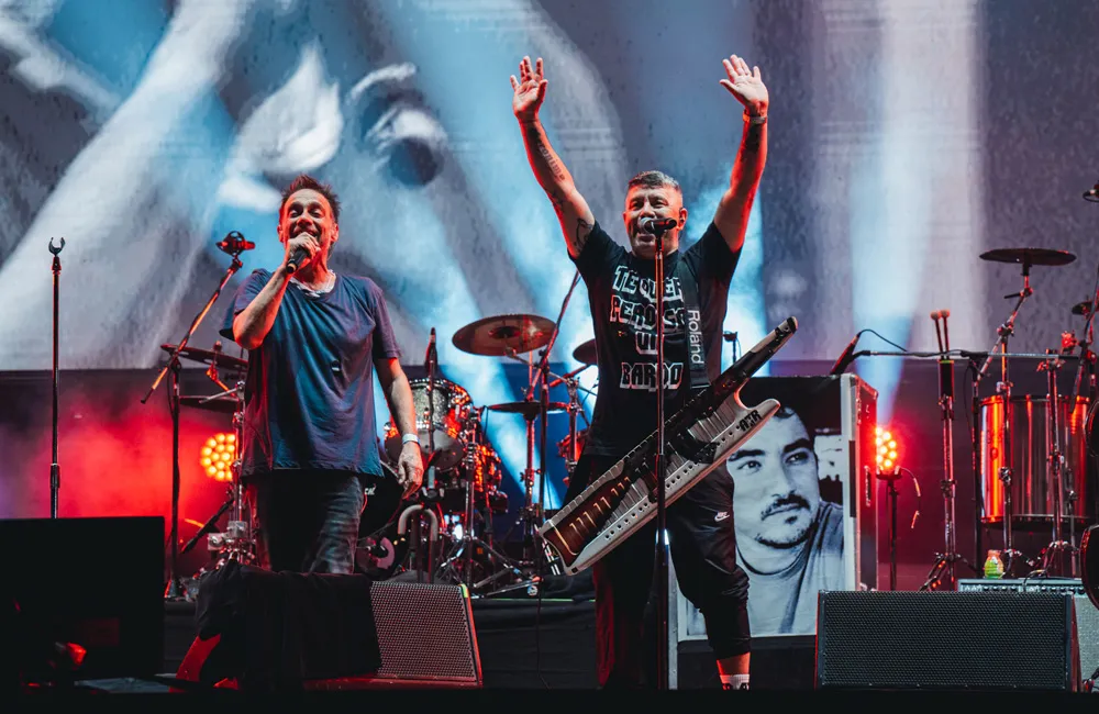 A standards fabulosos como “Manuel Santillán, el León” y “Demasiada presión”, les siguieron el cuelgue dub de “El genio del…” y los espasmos de hardcore progresivo en “Piazzolla”, con los que los Cadillacs reiteran que les encanta hacernos saltar a voluntad, pero también frenar todo y tomar el riesgo de compartir otros estímulos; al derroche percusivo en “Los condenaditos”, gentileza de La Bomba de Tiempo, le siguió “Padre nuestro”, en modo cumbión, con Pablo Lescano disparando magia desde ese teclado de francotirador impiadoso. Y entonces todo volvió a mudar para “Vos sabés”.